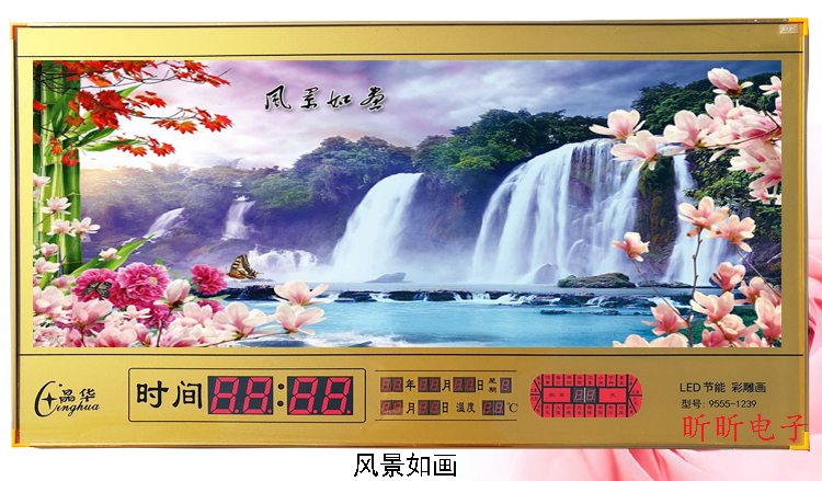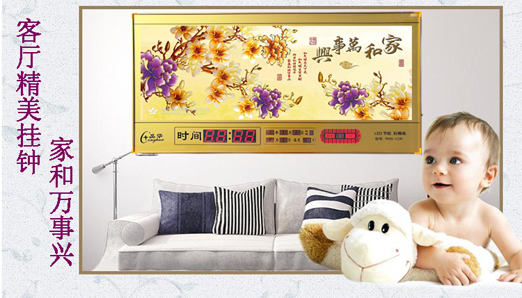 新房客廳家居日歷掛鐘2019新款電子萬年歷數(shù)碼壁掛家用創(chuàng)意鐘表LED客廳日歷掛鐘