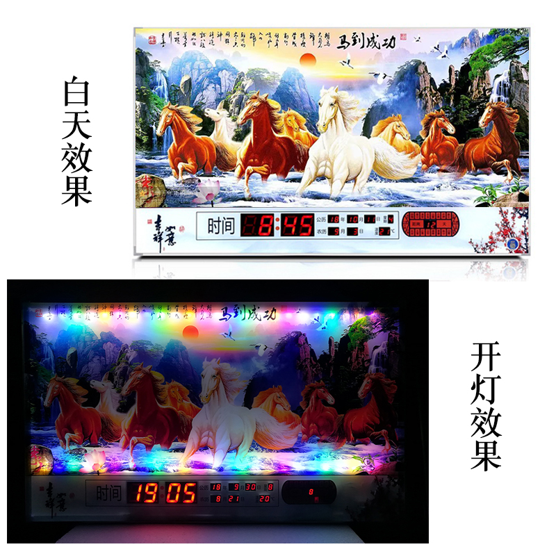 新房客廳裝飾日歷掛鐘,家和風景萬年歷,超薄七彩燈光更漂亮